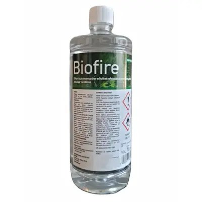 H Biofire® είναι διάλυμα βιοαιθανόλης υψηλότερης δυνατής ποιότητας για τζάκια βιοαιθανόλης. To καύσιμο Biofire έχει υποστεί δευτερογενή επεξεργασία καθαρισμού-διαδικασία διόρθωσης- ώστε να προσφέρει την καλύτερη δυνατή καύση σε εσωτερικό χώρο, διαδικασία που το κάνει να υπερέχει σε ποιότητα. Διαθέτει ενα διακριτικό και ευχάριστο άρωμα του δάσους.